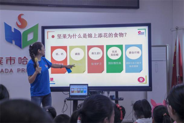 营养均衡、搭配合理的早餐,是开启全新一天的能量之源,对于正值生长发育关键期的少年儿童来说尤其重要。除传统的谷薯类、奶豆类、肉蛋类和蔬果类食物外,有助于增强记忆力、提升骨骼健康的新鲜坚果也可以为早餐“锦上添花”,保证学生们在紧张的学习生活中保持充沛精力。为了让学生们充分了解均衡早餐的重要性,“优德88免费营养早餐计划”以“美好的一天从早餐开始”为课程主题,由注册营养师和专业食育讲师以问题的形式科普早餐应该如何吃,以及为什么早餐最好搭配坚果等健康膳食知识;并总结出“4+1”的合理早餐概念,即谷薯类、奶豆类、肉蛋类、蔬果类+坚果类早餐,帮助学生们构建合理膳食,健康成长。